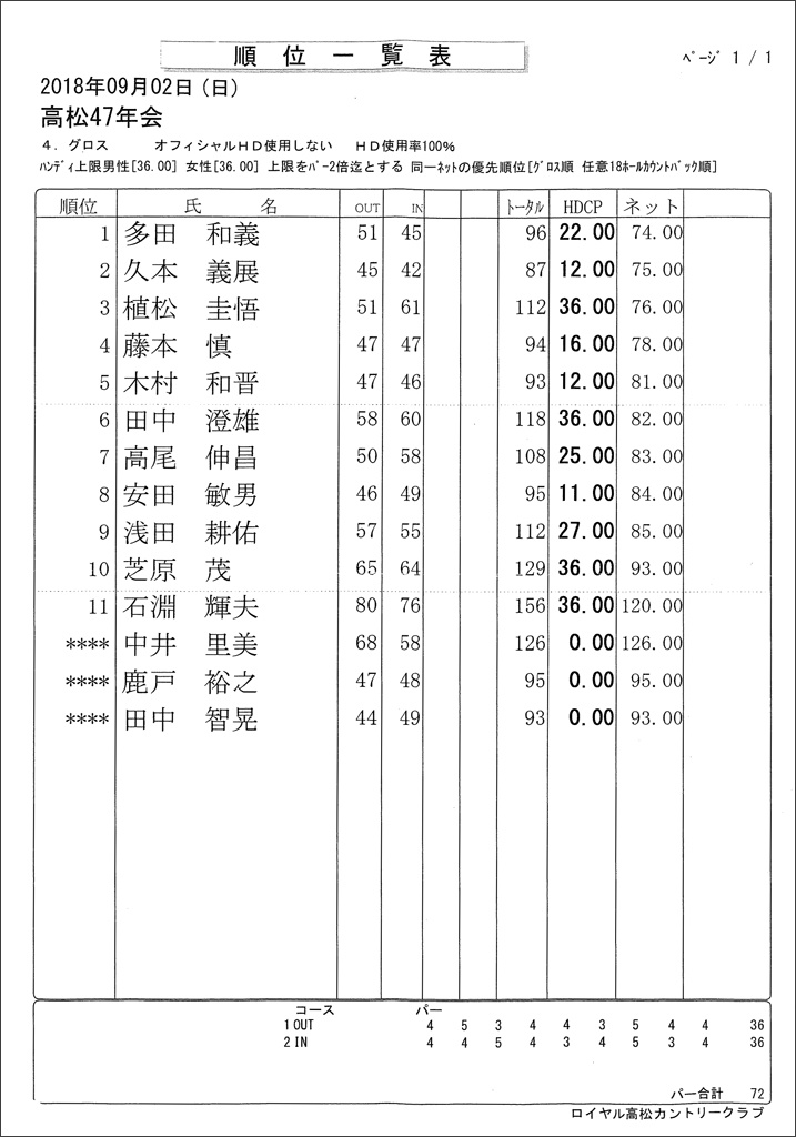 9月 2日(日)にロイヤル高松カントリークラブにて、第21回 47ゴルフコンペを行いました。