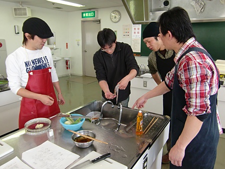 事業担当者の不安およそに、男達は終始笑顔を見せながら、開始から3時間後には、全班無事に、予想外にちゃんとした料理を完成 させ試食。